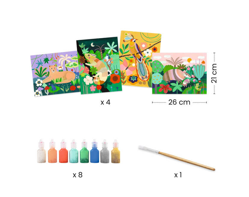 Knutsel Djeco Schilderdoos 3D verf Tropisch Woud 7+Djeco Schilderdoos – 3D Verf Tropisch Woud (DJ08968) Creatieve 3D-verfset waarmee kinderen vier tropische dierenpanelen versieren met reliëflijnen en -stippen. De speciale verf geeft een glanzend 3D-effect; ideaal voor een snel, zichtbaar resultaat. Aanbevolen voor 7–12 jaar.Beschikbaarheid:: 3 op voorraadArtikelnummer voorraad referentie: PIP-DJ08968 €20,95 Aantal: Bestel nu! Aangepaste verlanglijst OkToevoegen aan verlanglijstVergelijk productEmail een vriend Voordelen voor kinderenOefent fijne motoriek & oog-handcoördinatie (precies schilderen in reliëf).Stimuleert creativiteit, kleurgevoel en doorzettingsvermogen.Vergroot concentratie door stapsgewijze werkmethode (inclusief handleiding).Zelfvertrouwenboost: tastbaar, glanzend eindresultaat. Samen knutselen: leuk om te maken, te tonen of cadeau te geven.ProductspecificatiesLeeftijdsadvies: 7–12 jaar Inhoud set: 4 geïllustreerde panelen 21 × 28 cm, 8 kleuren parelmoerverf, 1 penseel, stap-voor-stap kleurenhandleiding; mini-flesjes met applicatortip.Effecten: reliëf (lijnen/stippen) met glanzend/parelmoer; variëren van effecten mogelijk.Thema’s/beelden: tropische dieren.Productlabels djeco dj08968 (1), 3d verf set (1), schilderdoos kinderen (1), knutselset 7 jaar (1), tropisch woud knutselen (1), reliëf schilderen (1), parelmoerverf (1), djeco knutselen (1)Gerelateerde producten Regenboogbende Regenboogspel 4... Met een beetje gezond verstand en geluk met de dobbelsteen, wachten aan het einde van de r...€32,95Bestel nu! Vergelijk product Aangepaste verlanglijst OkToevoegen aan verlanglijst Ukelele gitaar 4-snaren Print ... De calista is een houten sopraan ukelele, uitgevoerd met gitaarmechanieken. Hierdoor zijn ...€49,95Bestel nu! Vergelijk product Aangepaste verlanglijst OkToevoegen aan verlanglijst Ukelele gitaar 4-snaren Print ... De Calista 21 is een houten sopraan ukelele. De Calista 21 is uitgevoerd met gitaarmechan...€49,95Bestel nu! Vergelijk product Aangepaste verlanglijst OkToevoegen aan verlanglijst