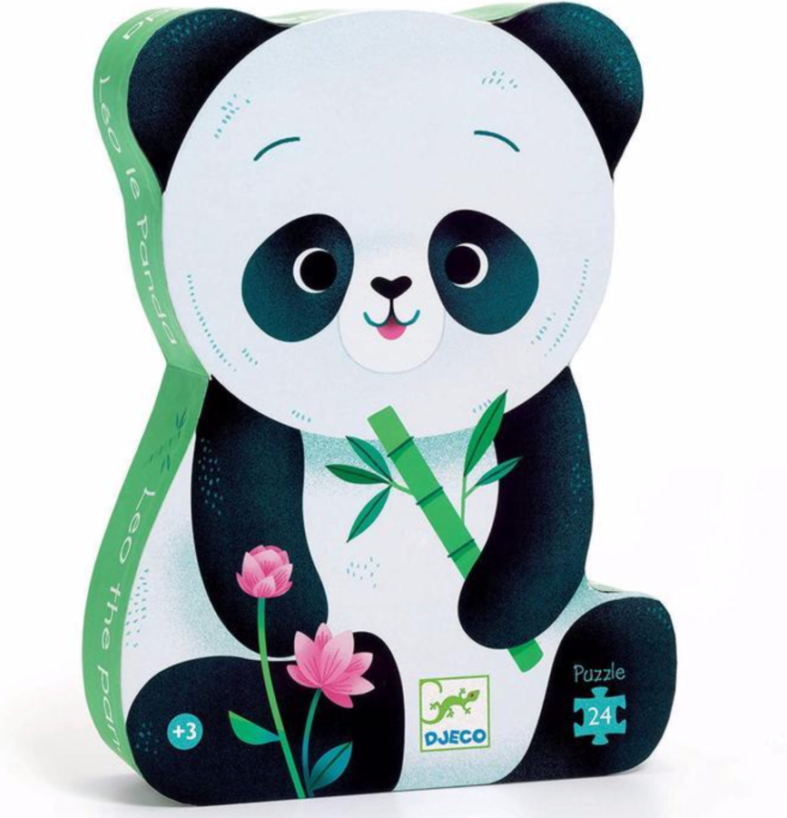 Djeco Puzzel – Leo de Panda (DJ07282) Schattige Djeco-puzzel met Leo de Panda en zijn moeder — 24 grote, stevige stukken die prettig in kleine handjes passen. Geleverd in een charmante silhouetdoos in pandavorm: leuk om te maken én als decoratie in de kinderkamer.