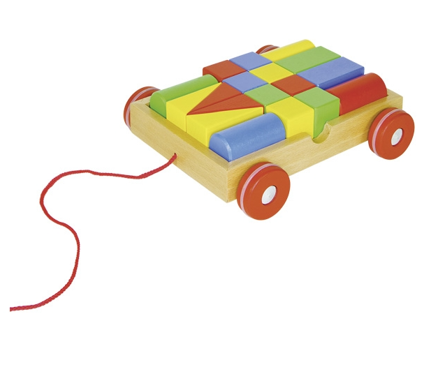 • Inhoud: 1 trekwagen + 18 houten blokken