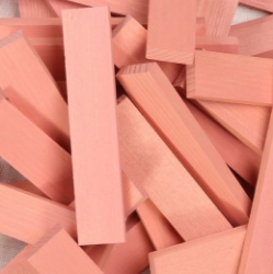Kapla donkerrood, violet, pruimrood, kistje met 40 grenenhouten plankjes van exact dezelfde ideale maatverhoudingen. Stevig kistje met een deksel van doorzichtig plastic glas.