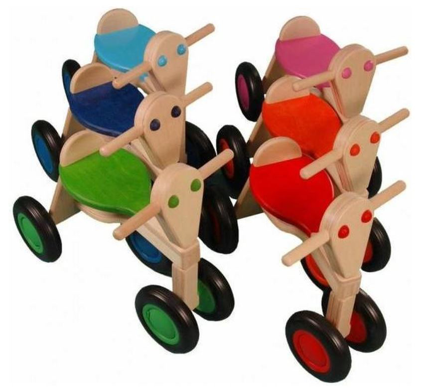 Kkwaliteits 4 wiel houten loopfiets Van Dijk Toys gemaakt van Europees Berkenhout en afgelakt met water gedragen lak. Uitermate geschikt voor een eerste verjaardag. Al spelend wordt de motoriek en evenwicht van uw kindje getraind. Zo wordt de overstap naar echt fietsen kleiner.Zithoogte 25 cm. Zeer degelijk geconstrueerde loopfiets. Door de zachte wielen wordt er geluidloos gereden en is de kans op strepen op de vloer minimaal. Deze loopfiets is in meerdere kleuren te verkrijgen en een ideaal kado voor een eerste verjaardag. Bij deze loopfiets kan vopr de tweede of derde verjaardag een bijpassend aanhangertje gekocht worden. Hierbij zit een eenvoudig te monteren trekhaak waardoor de totale speeltijd van de loopfiets fors wordt verlengd.