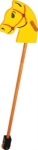 Schattig stokpaard, met houten stok en rolletje aan de onderzijde. Met zeer aaibaar pluchen paardenhoofd. Druk op z'n oor en hij gaat vrolijk hinniken.
