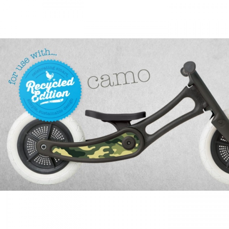 Geef de Wishbone Bike Recycled meer persoonlijkheid met de speciale stickerset "Camo". De Camo is speciaal ontworpen door Wishbone Design Studio om de Wishbone Bike een cool uiterlijk te geven. De stickers zijn eenmalig bruikbaar. Ze zijn eenvoudig te verwijderen maar kunnen daarna niet meer gebruikt worden.